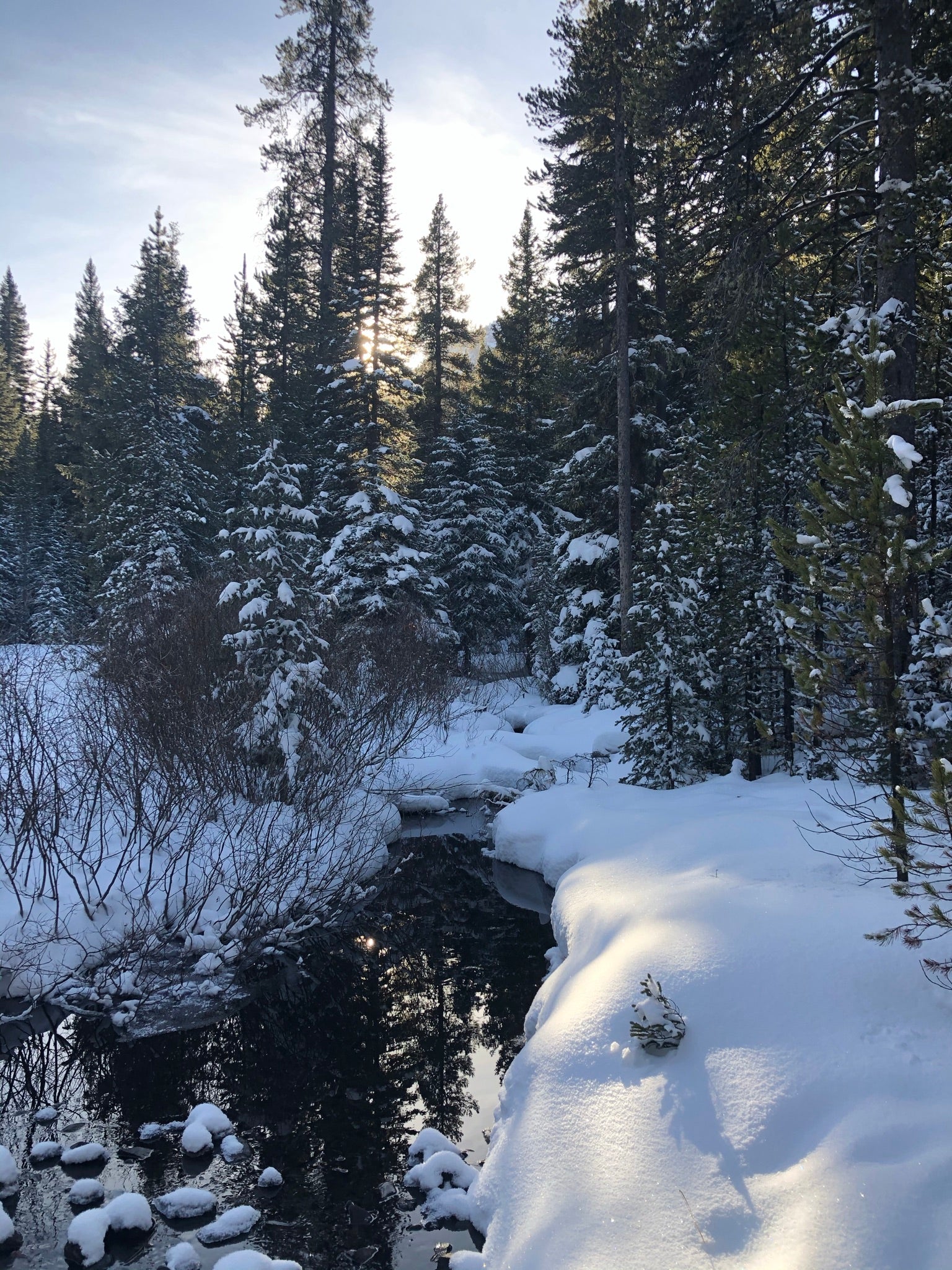 Imagine stepping into a still forest — the only sound is the gentle flow of a creek, its waters whispering over smooth pebbles and ice-edged banks.